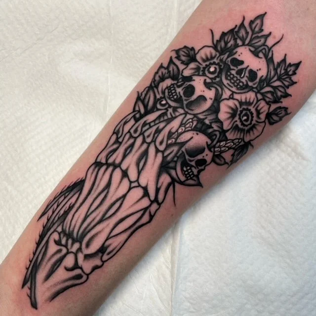 I cant wait to hear your ideas! I am currently accepting projects of all sizes Color or black and grey, Blackwork, Traditional, florals, lady heads, re-works (some coverups) script and everything else. My flash or custom work welcome!